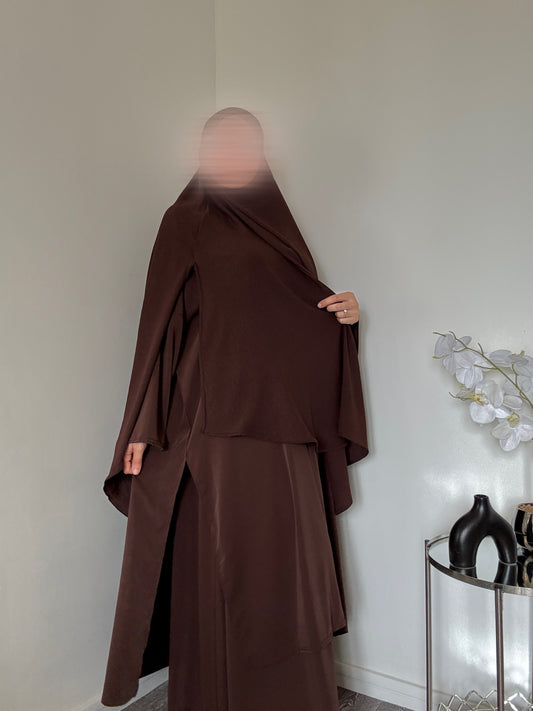 Abayas, jilbebs, hijabs, robes mastouras, gilets, ainsi que notre produit phare, le khimar, décliné en plusieurs coloris, longueurs et matières : Soie de médine , jersey premium ainsi que du jazz. Des tissus de qualité agréable et simple à porter !