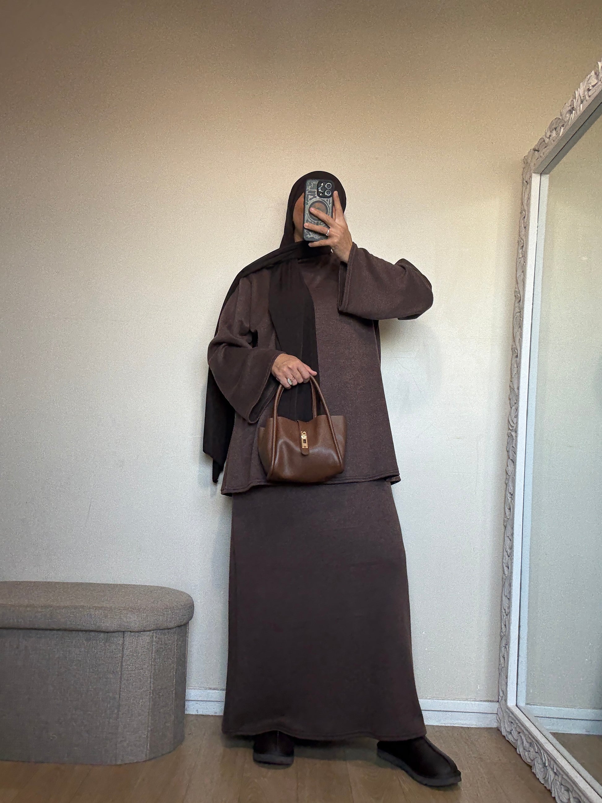 Cet ensemble jupe et pull long t’offre le parfait équilibre entre style, pudeur et douceur.